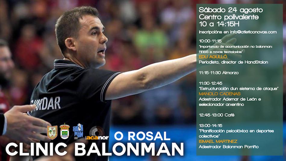 Y el broche lo pondrá Isma Martínez. El que fue máximo responsable de la mejor etapa del Acanor Novás, que ponía un punto y aparte en su etapa en O Rosal para volver al Balonmano Porriño, enfocará su ponencia a la psicología en los deportes colectivos.