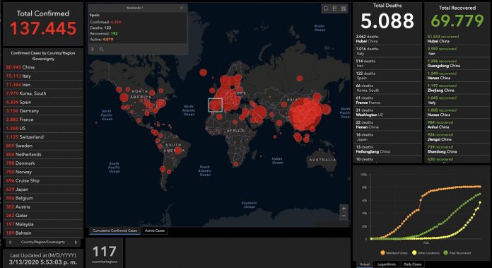 El Coronavirus COVID-19 deja más de 137.000 casos de contagio en 117 países del mundo, la inmensa mayoría (cerca de 81.000) en China, donde se han registrado más de 3.000 muertes por esta causa.