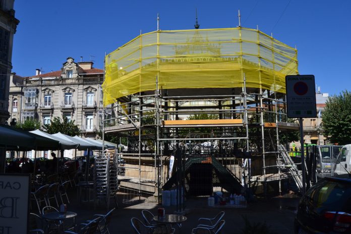 El Palco de la Música en el Paseo da Corredoira recuperará el color blanco con la que se pintó inicialmente en el siglo XIX tras el proceso de rehabilitación que comenzó la semana pasada. El objetivo después de múltiples estudios con diversas técnicas y documentación es que vuelva a lucir una imagen lo más similar a que tenía tras su construcción.