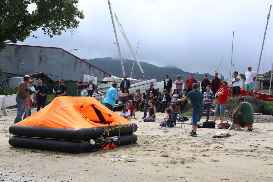 El ejercicio transcurrió con normalidad mientras el helicóptero «Pesca 1» recogía a un figurativo desde una balsa de rescate y un barco a vela, que previamente fueran fondeados por miembros del Club Alagua en las inmediaciones de A Pasaxe, Camposancos.