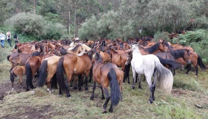Ya por la tarde comienza el ritual de «A Rapa das Bestas». Los ganaderos separan, marcan y cortan las crines de las reses que luego, son devueltas a los montes de A Groba donde viven todo el año en libertad. Se espera que entren en este curro sobre 150 caballos y 70 potros.
