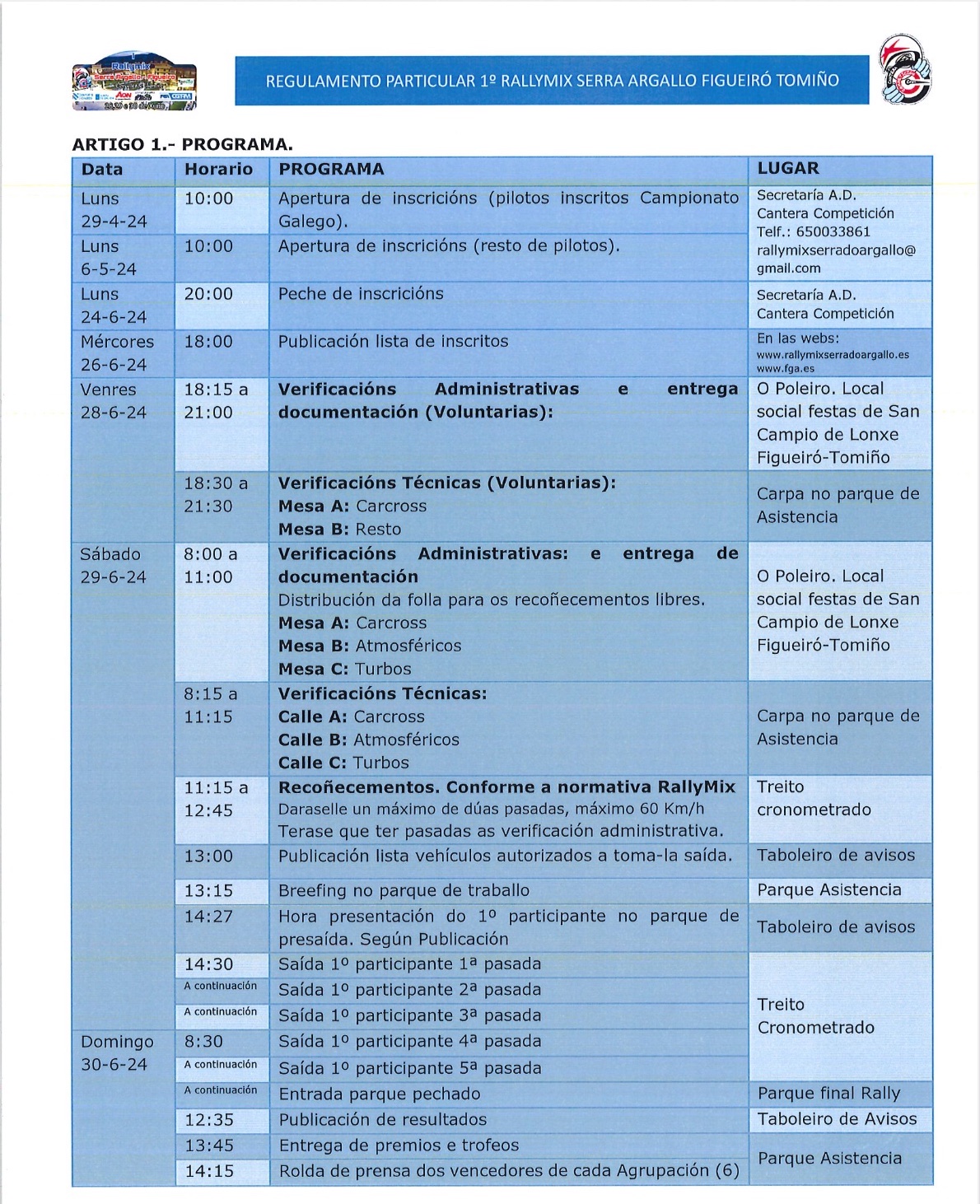 La competición comenzará este viernes 28 por la tarde noche con las verificaciones optativas para dar paso el sábado a la primera de las tres pasadas previstas a partir de las 14.30 horas. Ya el domingo la carrera comenzará a las 08.30 horas en una jornada en la que habrá tres nuevas pasadas y fin de fiesta a partir de las 13.45 horas en la Praza da Casa Rectoral de Figueiró.