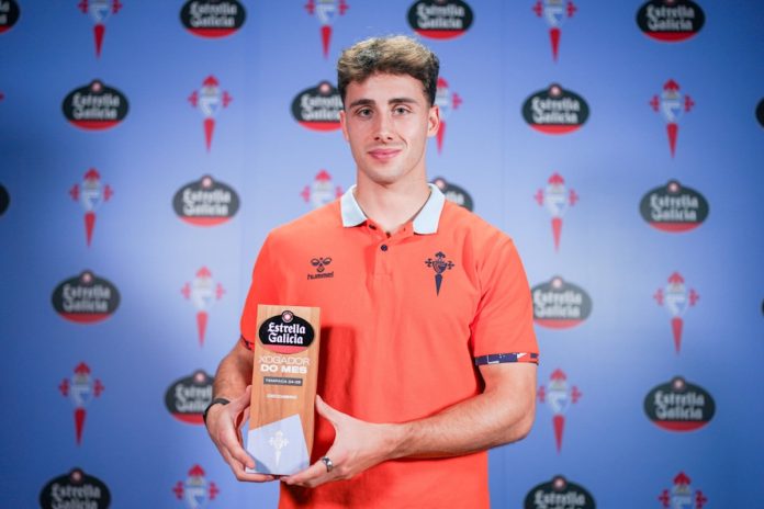 Pablo Durán gana su primer Premio Estrella Galicia tras firmar un mes excepcional. El canterano ha sido elegido por los aficionados celestes como el mejor futbolista del RC Celta de diciembre tras imponerse en la fase final de la votación a Hugo Álvarez y a Fer López.