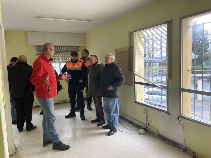 «Hai un mes firmamos ante notario os derradeiros papeis que faltaban para completar toda a documentación e agora queremos adiantar tempo empezando a avaliar as obras máis urxentes antes da propia entrega de chaves«, indica el alcalde, Juan González, quien también estuvo acompañado en la visita por representantes de la Asociación de Vecinos Monteferro-Panxón y Protección  Civil, ya que serán los futuros usuarios.