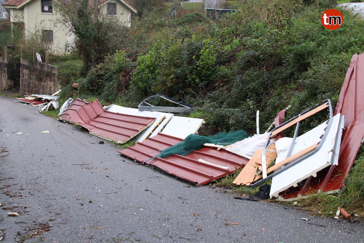 El fuerte viento que azotó la localidad del Baixo Miño, con rachas huracanadas que sobrepasaron los 152 km/h en Oia, levantaron esta pasada madrugada un tejado de un garaje de unos 80 m2 en Arrotea, Amorín.