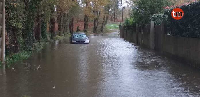 En Carregal, un conductor quedó atrapado con su coche en medio de una balsa de agua que inundó la vía por la que circulaba. El hombre, vecino de la zona, pudo salir por su propio pie del vehículo, que fue retirado por una grúa.