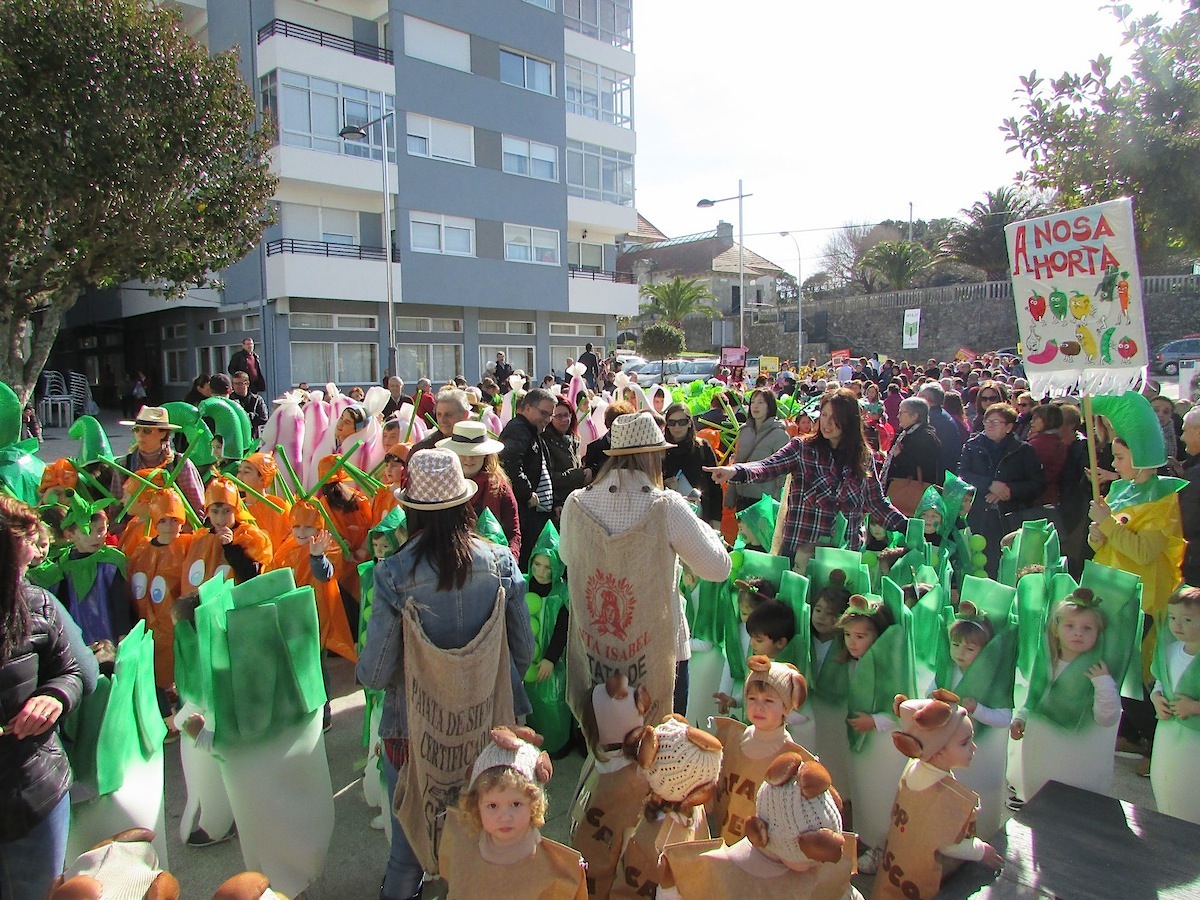 Entre los participantes se pudieron ver trajes en homenaje a diferentes artistas como Dalí o Velázquez, pescadores con sus productos del mar, disfraces inspirados en ‘Charlie y la fábrica de chocolate’ y una gran variedad de frutos de la huerta como maíz, patatas, zanahorias, tomates, guisantes, etc. junto a los granjeros, entre otros.