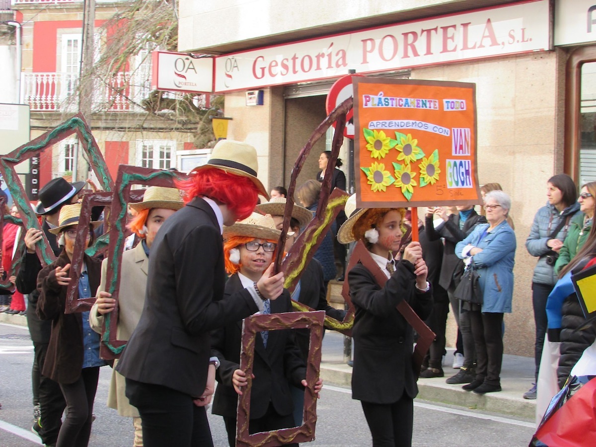 En el “Entroido dos coles” de este viernes, los niños realizaron un desfile por las calles de A Guarda para exponer sus disfraces a todos los vecinos. El desfile comenzó en la Alameda y recorrió la calle de Galicia hasta llegar a la Esquina do Galo.
