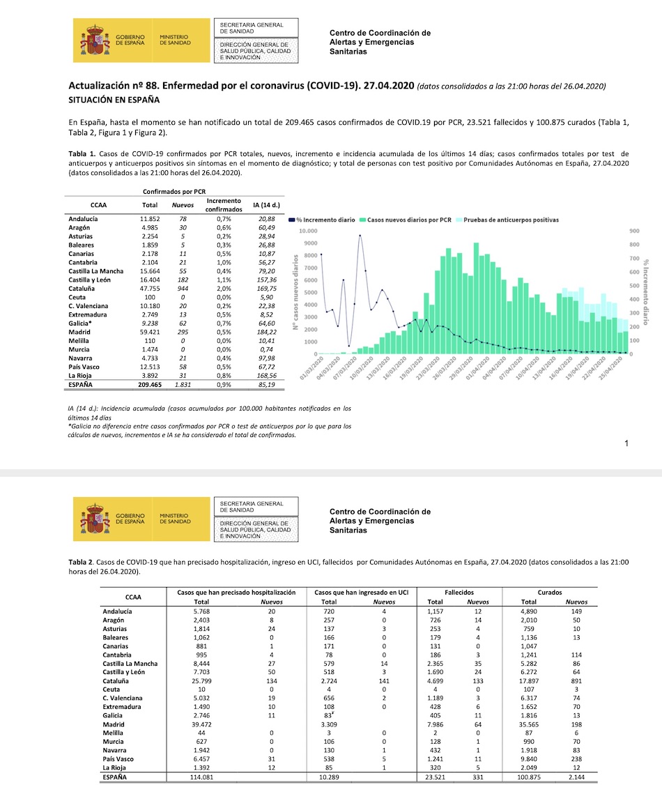 Los contagiados por Coronavirus también han aumentado de ayer a hoy en 1.887 personas. Los enfermos con la dolencia en nuestro país son 209.465 contagiados diagnosticados mediante PCR, según ha informado el Ministerio de Sanidad.