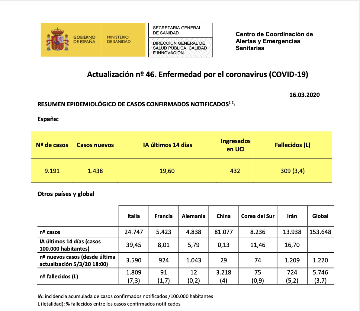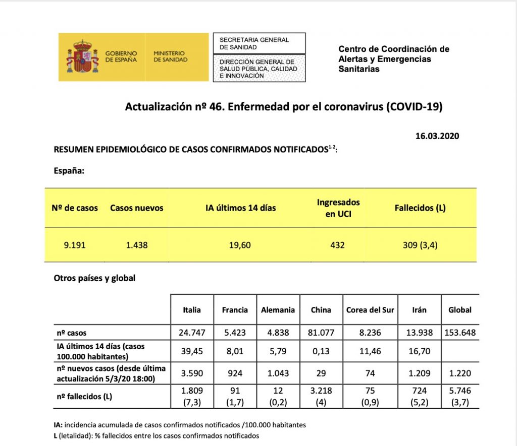 Siguiendo instrucciones del protocolo de comunicación del Ministerio de Sanidad, a partir de hoy sólo se actualizarán los datos una vez al día.