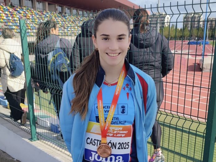 Esta medalla se suma al oro logrado el pasado 2 de febrero en el Campeonato Gallego de Lanzamientos de invierno de Jabalina Sub16 con una marca de 35,88 metros, que se celebró en O Barco de Valdeorras.