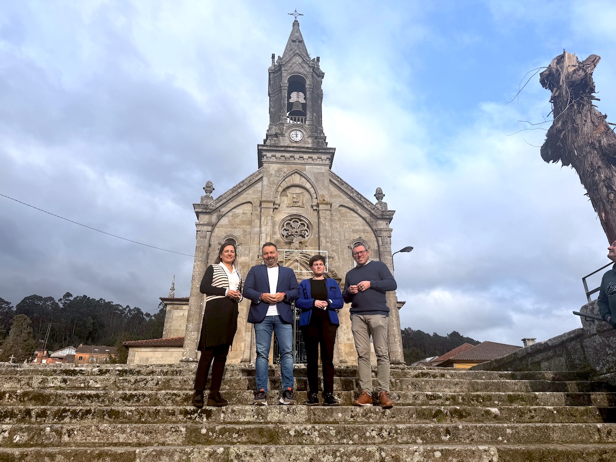 El alcalde, Paco Ferreira, visitó el comienzo de los trabajos acompañado por la presidenta de Galicia Suroeste y alcaldesa de Tomiño, Sandra González, y por la representante institucional del Xeodestino y alcaldesa de O Rosal, Ánxela Fernández Callís. A la visita asistió también el párroco, quien recorrió con las autoridades el templo y su contorno.