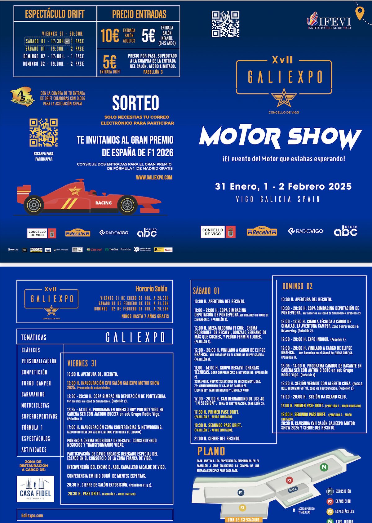 Entre medias habrá programas de radio en directo, nuevas charlas técnicas, una mesa redonda dedicada a la F1 y a la que asistirá el conocido periodista Gonzalo Serrano, así como DJ, bailes o actuaciones (habrá una sesión vermut el domingo con Alberto Cuña) y food truck para que los visitantes a Galiexpo puedan alargar la jornada y contar con momentos para descansar y reponer fuerzas.