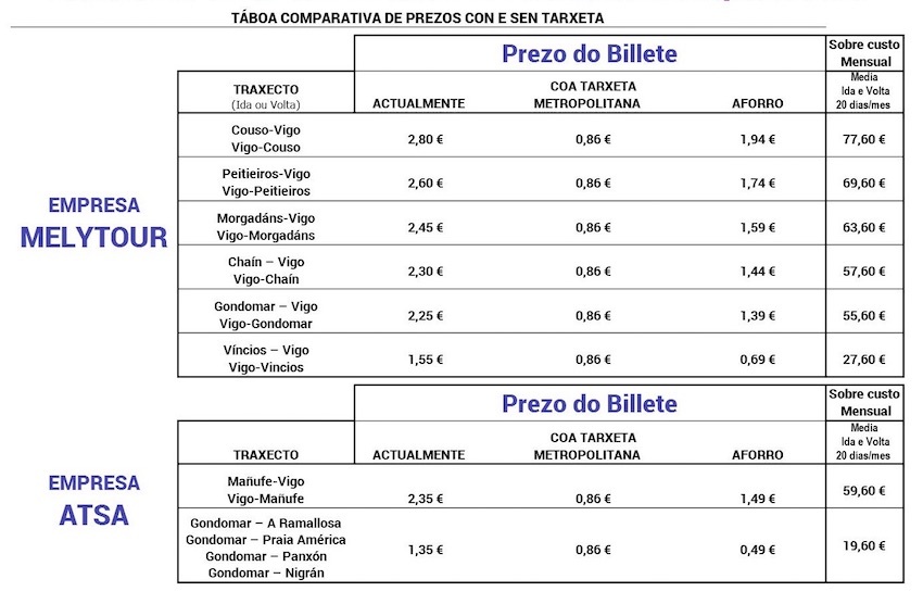 Desde la Asamblea Veciñal por un Transporte Digno para Gondomar, convocante de la concentración, a través de su portavoz, Manuela Pumar, indicaron que entregaron al Presidente Feijóo una copia del documento con sus reivindicaciones y una tabla comparativa de precios de cómo sería el importe del billete con o sin la “Tarxeta”, «xa que o aforro é considerable».