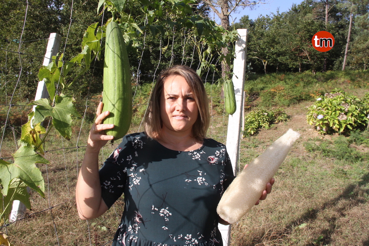 “La Luffa es una planta trepadora de la misma familia que el calabacín, pero con la particularidad de que, además de que se pueden comer, sus frutos son usados como esponjas vegetales”, comenta Patricia en su casa de Vilaza.