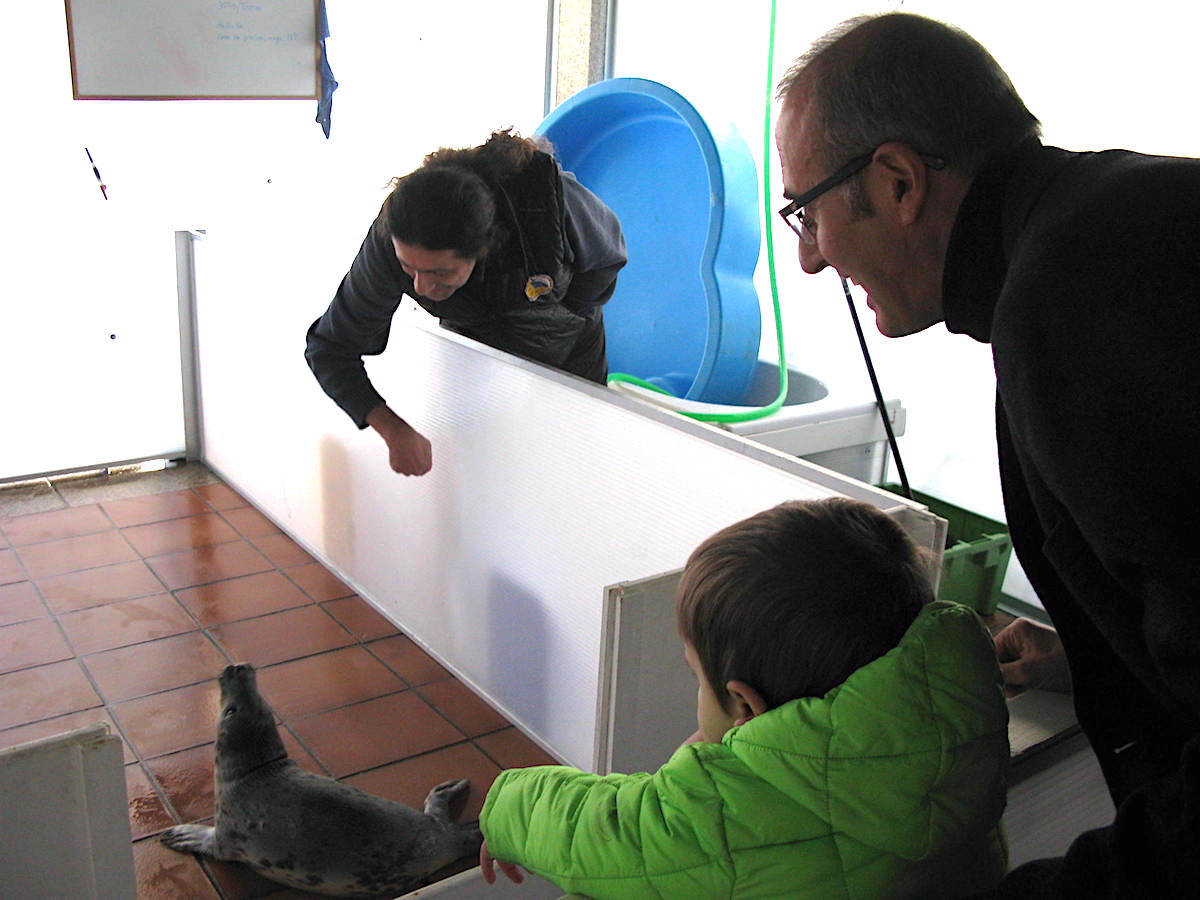El alcalde de Nigrán, Juan González, visitó hoy a ‘ Guardesiña‘, la foca gris que varó en el puerto de A Guarda el pasado 14 de enero en muy mal estado y que se encuentra recuperándose en la UCI del CEMMA (Coordinadora para o Estudo dos Mamíferos Mariños) en Nigrán.