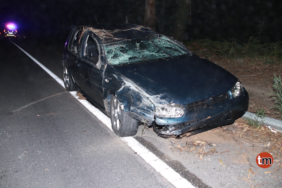 Un conductor ha resultado herido tras salirse esta noche su coche de la vía en Pego Negro. El hombre, vecino de la zona, circulaba por la PO-331 en dirección Vincios-Gondomar. Al llegar a la altura del kilómetro 16, perdió el control de su vehículo, se salió por el margen derecho de la calzada, colisionó con el quitamiedos y dio varias vueltas de campana.