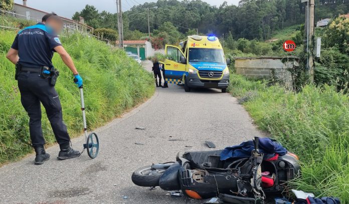 El ciclomotor en el que viajaba el herido, vecino de Nigrán de unos 35 años, colisionó frontalmente con un vehículo en una carretera secundaria que une Condominguez con Camos.