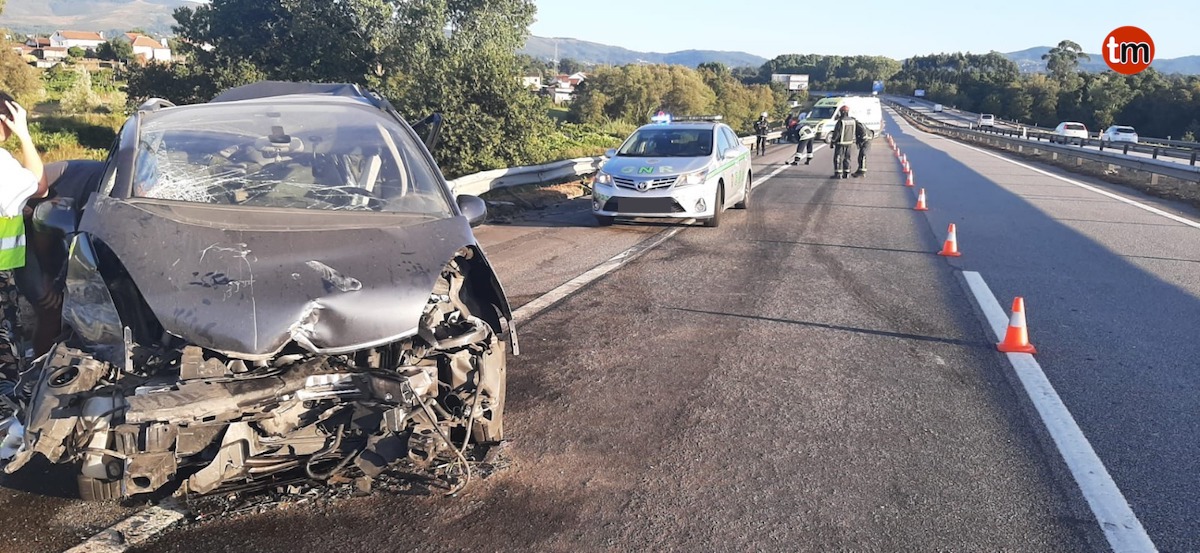 Seis miembros de una familia de Tui han resultado heridos, dos de ellos graves, en un brutal accidente registrado esta tarde entre un Citroën y un camión en la IP1, en Valença do Minho.