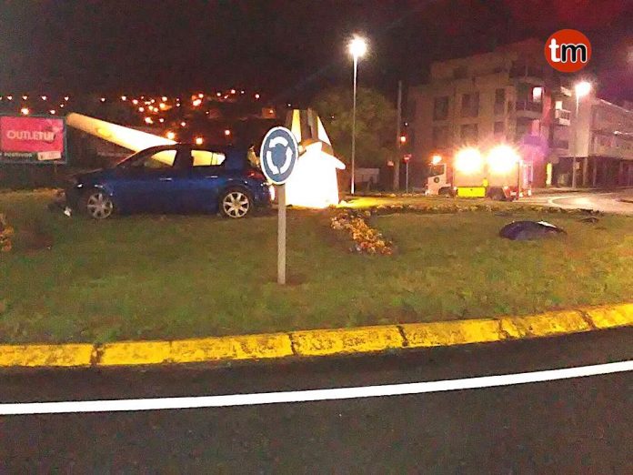 El sucesos ocurrió sobre las 2.45 horas de esta madruga, cuando los jóvenes circulaban en un Renault Megane por la Rúa das Areas en dirección A Ramallosa. Al llegar al cruce, el vehículo se subió encima de una isleta, tiró un árbol y una señal y prosiguió la marcha hasta finalizar su camino en medio de la rotonda.