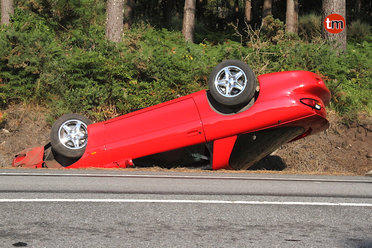 Un matrimonio de Oia resultó ileso esta tarde tras volcar con su Chevrolet Camaro en Portecelo, O Rosal.