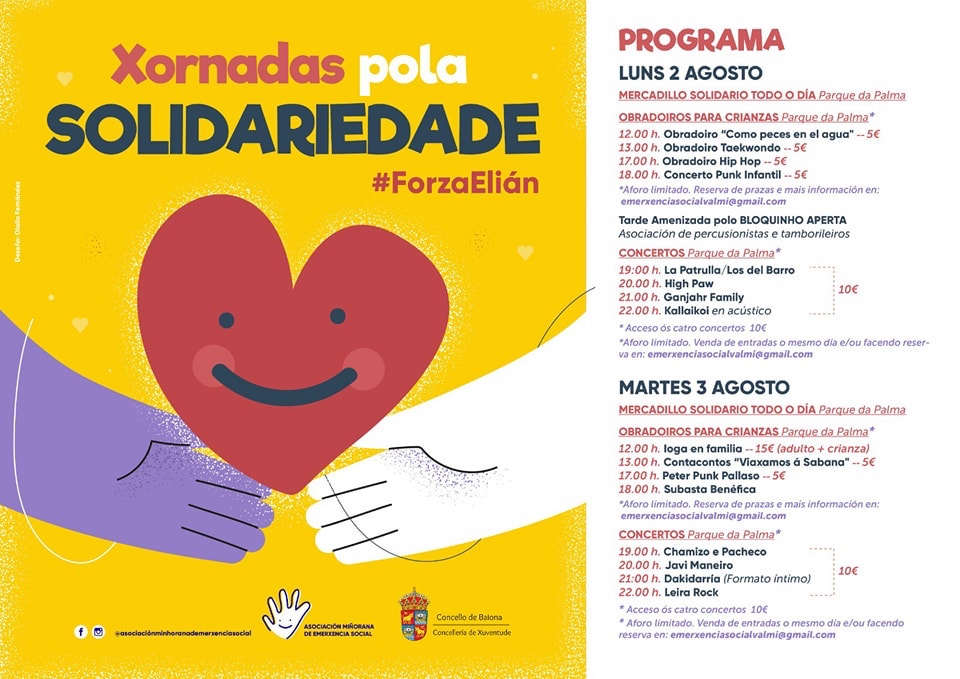“En pouco días mobilizámonos, formamos unha asociación e bosquexamos unhas xornadas para recadar fondos, organizámonos, compartimos ideas, e aquí estamos… nervosas, emocionadas e decididas a traballar man a man con artistas, artesás, hostaleiras e pequenos comercios da comarca co único fin de poder axudar a Elián e á súa familia”, explican desde la Asociación.