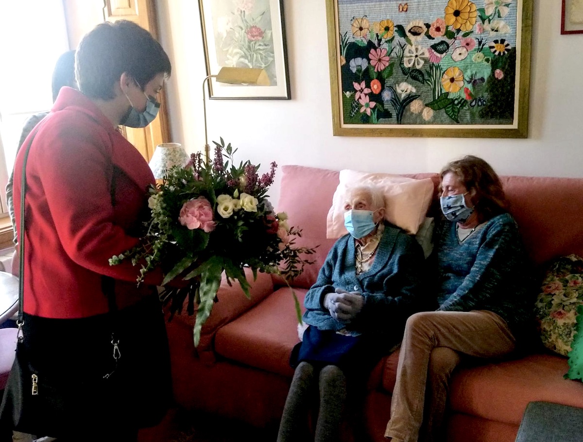 La alcaldesa de O Rosal, Ánxela Fernández, se acercó hasta el domicilio de Lucinda para agasajarla con un ramo de flores de parte del Concello y desearle que continúe con la buena salud con la que cuenta hasta ahora. “Para min foi todo un privilexio poder visitala e compartir un anaco de tempo con esta muller tan entrañable”, destacó.