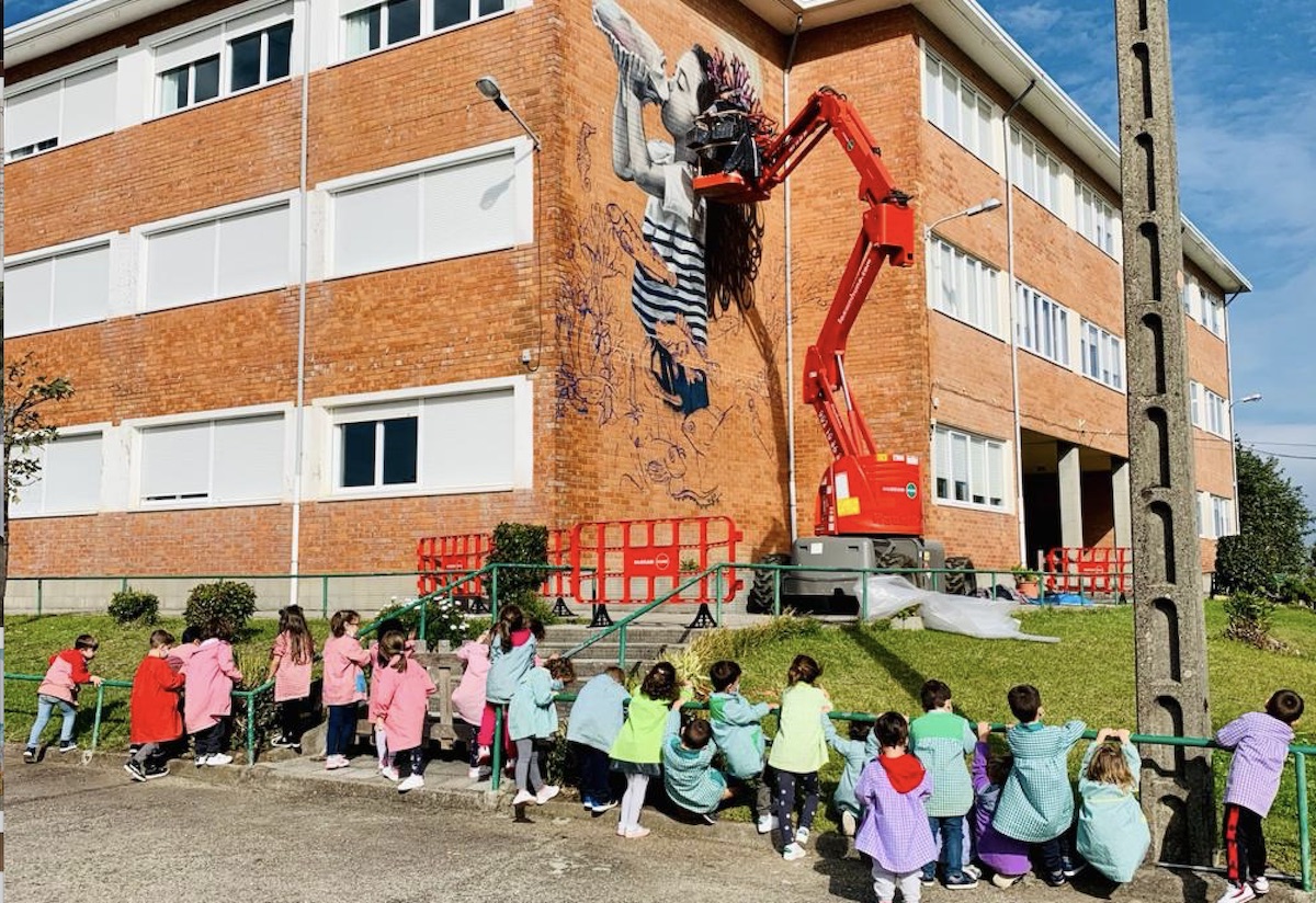 Esta semana comenzó la pintura de un mural a cargo de Lula Goce. La artista baionesa visitó en septiembre todas las clases para presentar su obra desde una perspectiva de género y solicitar la ayuda del alumnado para realizar el bosquejo del mural. Con todas las creaciones enviadas por los niños por correo electrónico, Lula Goce dejará en el colegio la esencia de su obra, recreando una niña combinada con elementos naturales, en este caso ser vivos de los fondos del mar de Baiona, como concreción de las temáticas trabajadas en el proyecto “A igualdade: un mar de oportunidades”.
