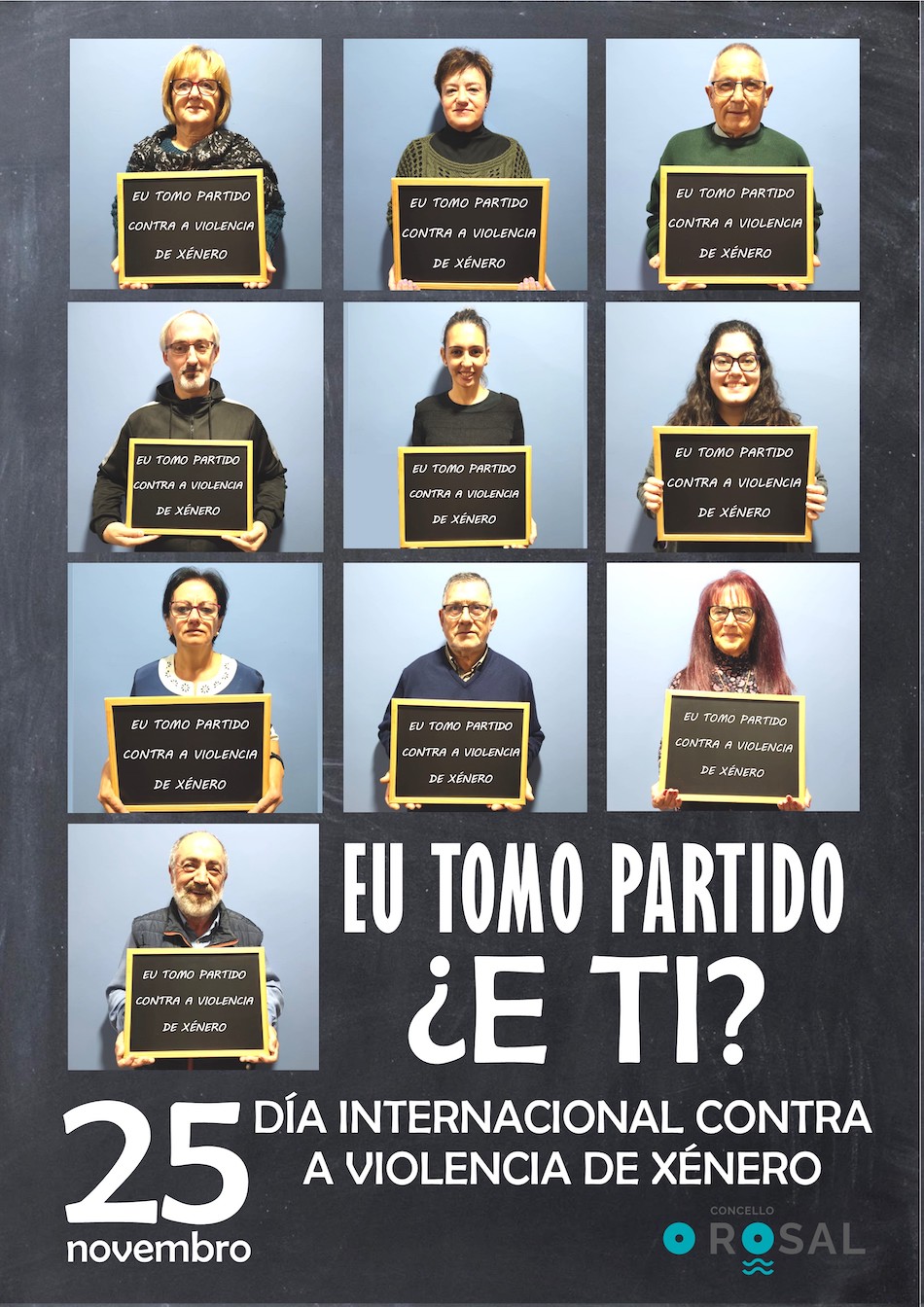 O Rosal se declara un año más en contra de la violencia de género y de cualquier tipo de agresiones. Con motivo de 25 de noviembre, Día Internacional de la Eliminación de la Violencia contra la Mujer, el Concello pone en marcha una nueva edición de la exposición ‘Eu tomo partido, ¿e ti?’, que este año está protagonizada por integrantes de la Asociación Músico-Cultural Ecos do Folón.