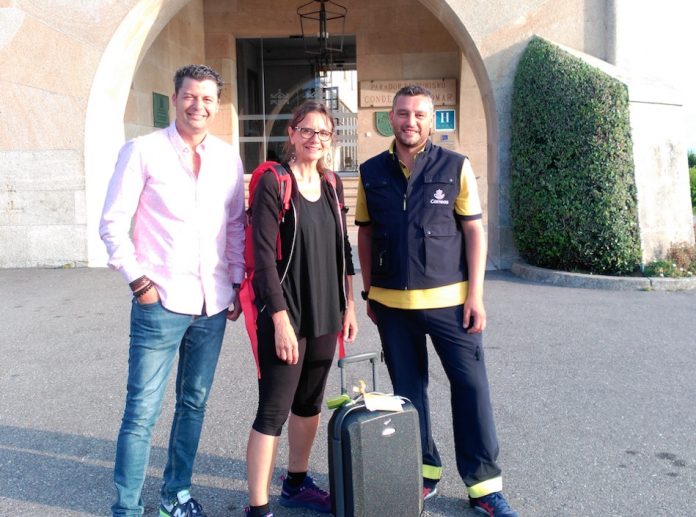 En Baiona ha podido disfrutar de una visita guiada para conocer la Villa, y antes de comenzar a caminar, el Alcalde de Baiona, Carlos Gómez, ha querido intercambiar unas palabras con ella, y la ha obsequiado con una cantimplora realizada expresamente para peregrinos.