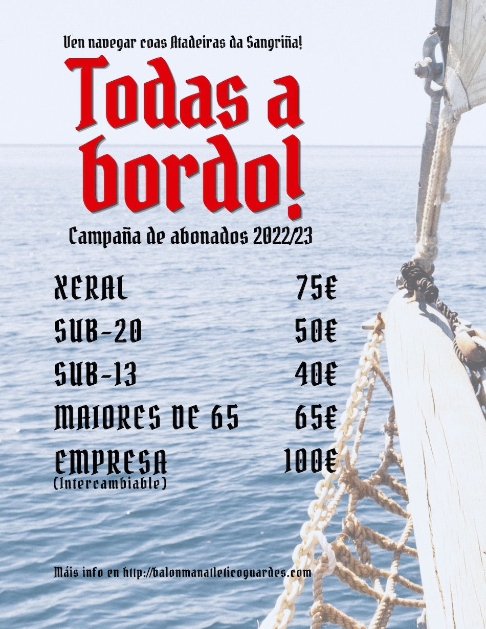 Para esta campaña de socios, el Club Balonmán Atlético Guardés mantiene los mismos precios que en el curso pasado. La clase general costará 75 euros. A partir de ahí, 65 para mayores de 65 años, 50 para menores de 20 y 40 para menores de 13. Además, hay una categoría de empresa, a 100 euros, que permite intercambiar el carné -los demás deben presentarse junto al DNI-. Este abono es válido para todos los partidos de la Liga regular, para la ronda preliminar de la Copa de la Reina y para la segunda eliminatoria de la EHF European Cup, a la que el Guardés entrará directamente en diciembre. El conjunto miñoto quedó exento de la primera por ser uno de los cabezas de serie de la competición.