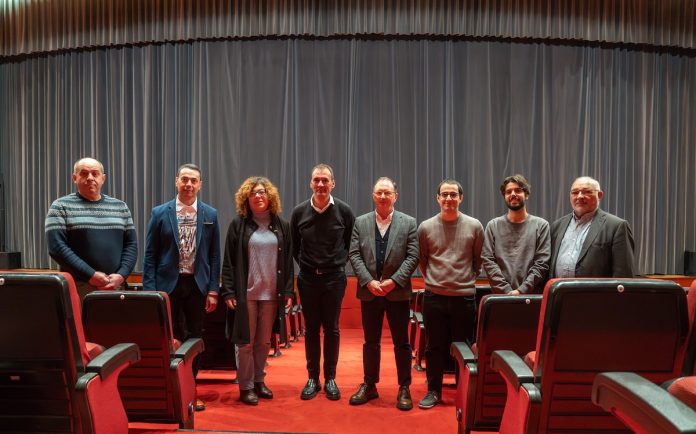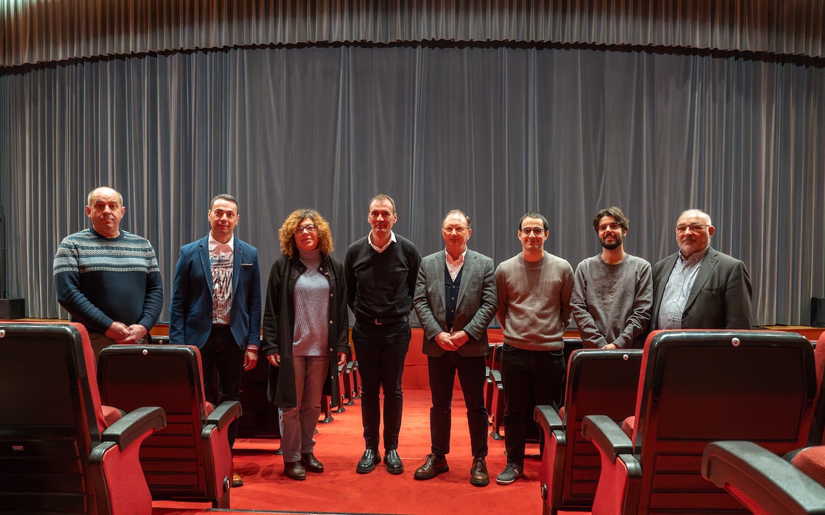 Este mediodía el alcalde de Tui, Enrique Cabaleiro, el presidente de la Cámara de Valença, José Carpintera junto representantes de las cuatro agrupaciones que actuarán conjuntamente en el concierto conmemorativo de este aniversario, visitaron el Teatro Municipal.