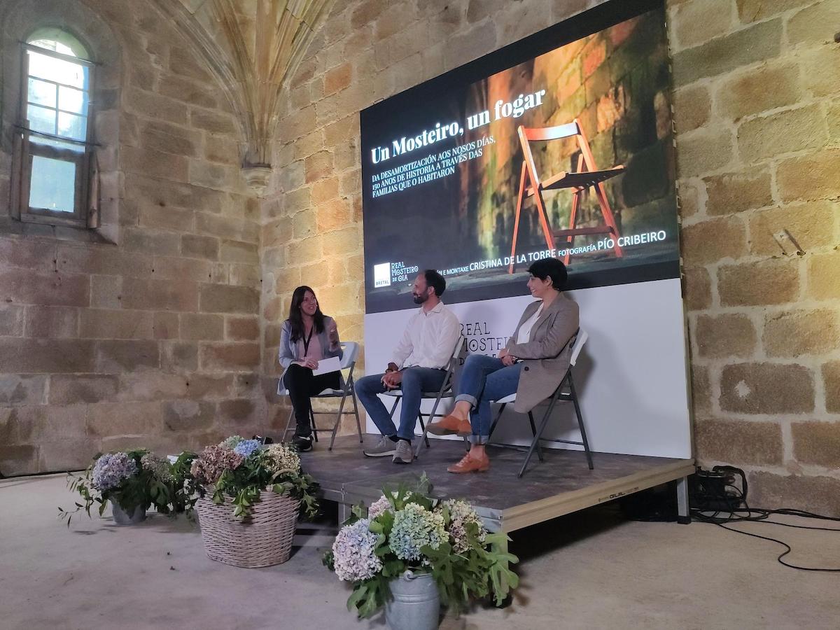 Después del primer pase, se celebró un coloquio entre el máximo responsable del Mosteiro de Oia, Xoán Martínez, y la directora del documental Cristina de la Torre, donde se ahondó tanto en las motivaciones de este trabajo como en la parte más técnica y de producción.