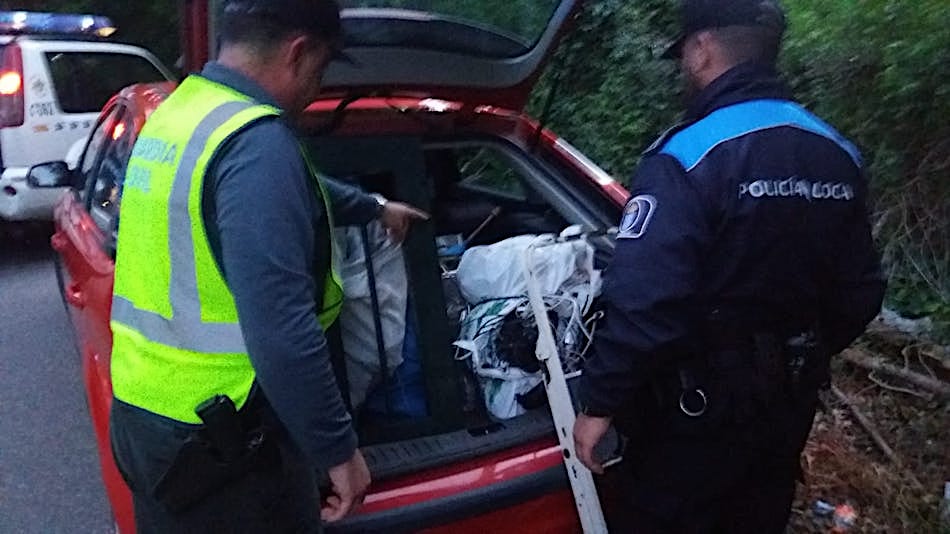 Cuando emprendían la marcha con el maletero del vehículo cargado, fueron interceptados por el operativo que cerraba las vías de salida, que estaba integrado por una patrulla del Puesto de la Guardia Civil de Gondomar y dos efectivos de la Policía Local de Gondomar.