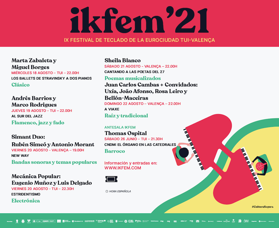IKFEM, International Keyboard Festival & Masterclass de la Eurociudad Tui – Valença es un evento que, partiendo de la música de instrumentos de teclado, ofrece un amplio abanico de propuestas culturales con un marcado carácter transfronterizo, y que celebrará su IX edición del 18 al 22 de agosto de 2021.
