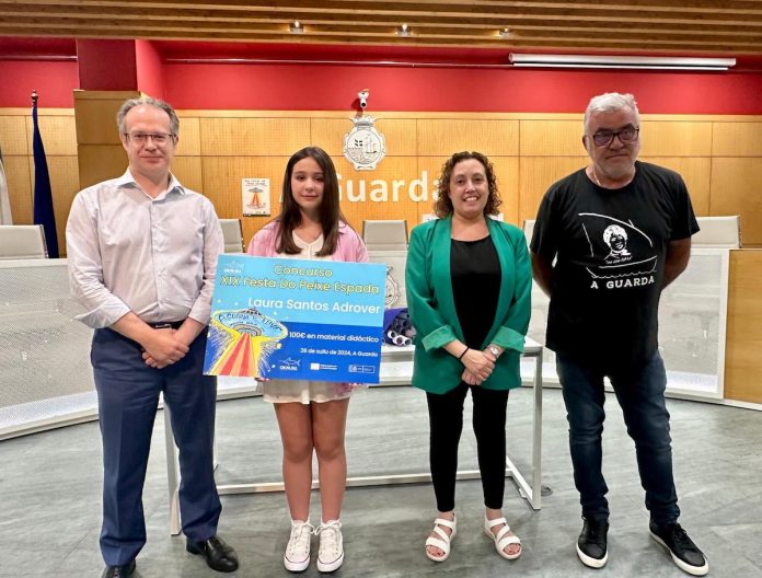 En un emotivo acto celebrado en el salón de plenos del Concello de A Guarda, la joven Laura Santos Adrover, alumna de 6º de Primaria del Colegio San José Carmelitas, recibió el premio del Concurso Infantil de Diseño del Cartel de la Festa do Peixe Espada por su original dibujo.