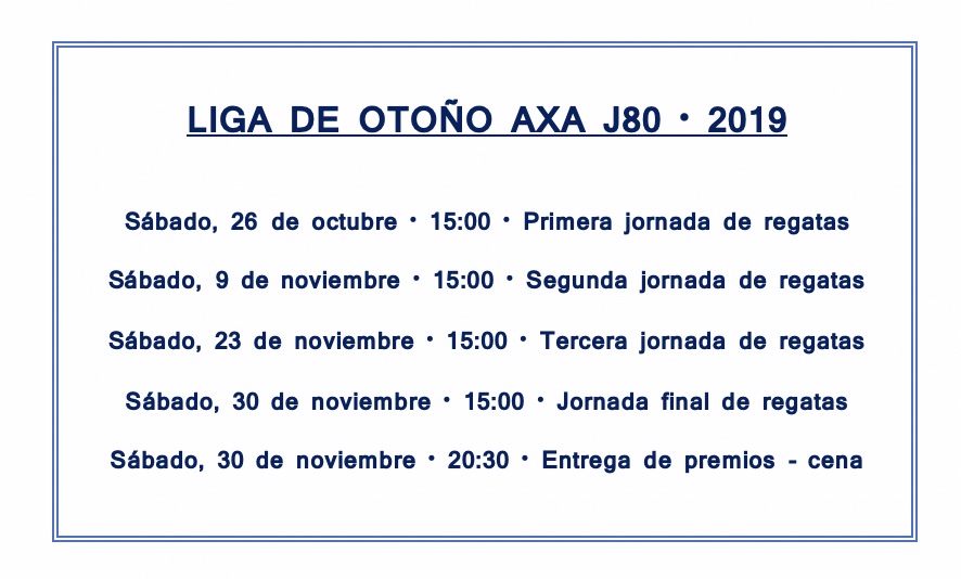 Baiona acoge este sábado a partir de las tres de la tarde la primera jornada de la Liga de Otoño AXA J80, último round de la temporada deportiva del Monte Real Club de Yates en este 2019. El club baionés cierra sus competiciones del año con la celebración de 4 jornadas regateras para veleros J80, una clase por la que lleva años apostando.