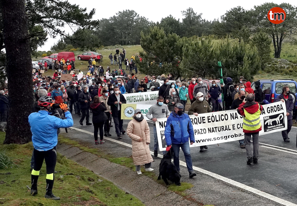Con consignas como “A Groba non se vende, A Groba se defende”, vecinos, comuneros, activistas, ganaderos, ciclistas y políticos de todos los concellos miñoranos, recorrieron un kilómetro desde el punto de salida hasta la zona dónde está previsto instalar un parque eólico. Sesenta colectivos apoyan la protesta convocada por la plataforma SOS Groba y el IEM.