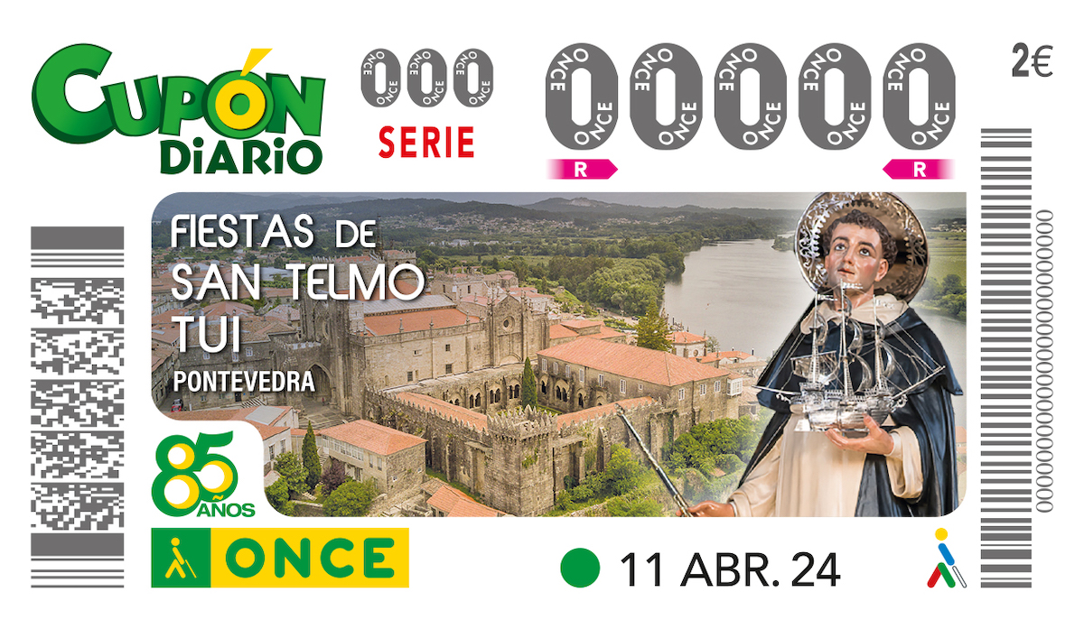 La ONCE dedica su cupón del jueves, 11 de abril, a las Fiestas de San Telmo de Tui. Cinco millones de cupones animarán por toda España a visitar la localidad y disfrutar de la fiesta.