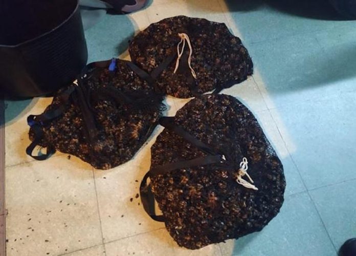 Además del decomiso de 37 kilos de percebe, se intervinieron 2 rasquetas, 2 linternas, 2 trajes de neopreno, 2 gafas de buceo, 2 capachos, 2 pares de escarpines y 3 salabardos más los que contienen el percebe.