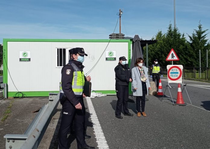 La subdelegada del Gobierno en Pontevedra, Maica Larriba, acudió esta mañana al paso fronterizo de Tui, para supervisar la labor de control de la frontera que está desarrollar la Policía Nacional debido a la situación de crisis sanitaria ocasionada por la COVID- 19. En su visita estuvo acompañada por la comisaria provincial de Pontevedra, Estíbaliz Palma.