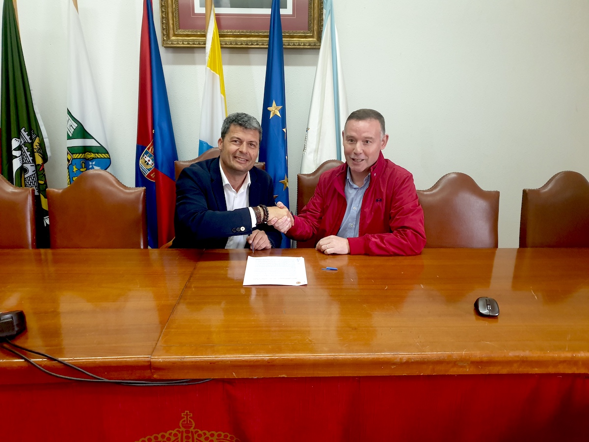 Hoy se ha firmado el contrato entre el alcalde de Baiona, Carlos Gómez, y el representante de la entidad Coto Estudios y Construcciones, SL., adjudicataria de la ejecución de las obras del “Proyecto de Reforma del Edificio de Mercado de Sabaris”, de entre las 7 ofertas presentadas ante la mesa de contratación municipal.