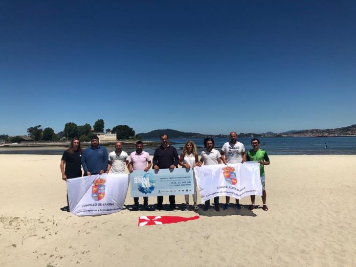 La Concejalía de Deportes y de Actividades Marítimas de Baiona presentó esta mañana en la playa A Ladeira su tradicional Semana Azul de fomento de los deportes náuticos entre los escolares.