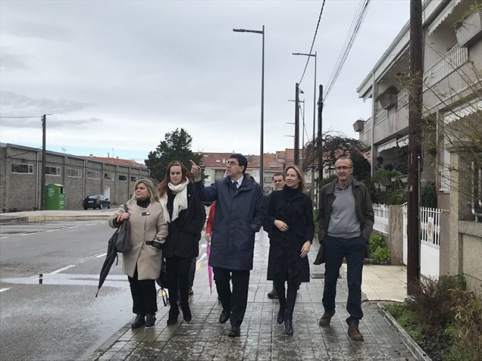 La directora general de Administración Local, Marta Fernández-Tapias, y el delegado territorial de la Xunta en Vigo, Ignacio López-Chaves, se desplazaron hoy hasta Nigrán para comprobar in situ las obras de mejora del alumbrado público ejecutadas en la calle Arquitecto Palacios.