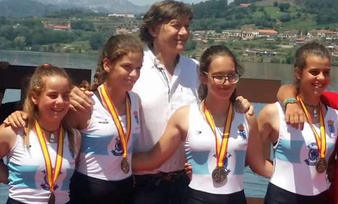 Las remeras, Lara Oliveira, Martina Juncal, María Arias y Ana González, se proclamaron campeonas de España en Cuatro Scull Infantil Femenino. Las del Miño lograron la única medalla de oro para Galicia en estos campeonatos. Magnifico trabajo el de sus entrenadores, Luis, Alberto y Manuel Ángel, que supieron sacar lo mejor de estas campeonas.