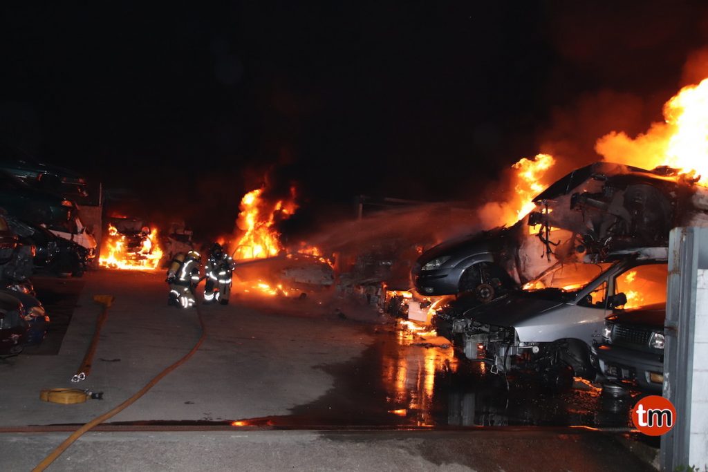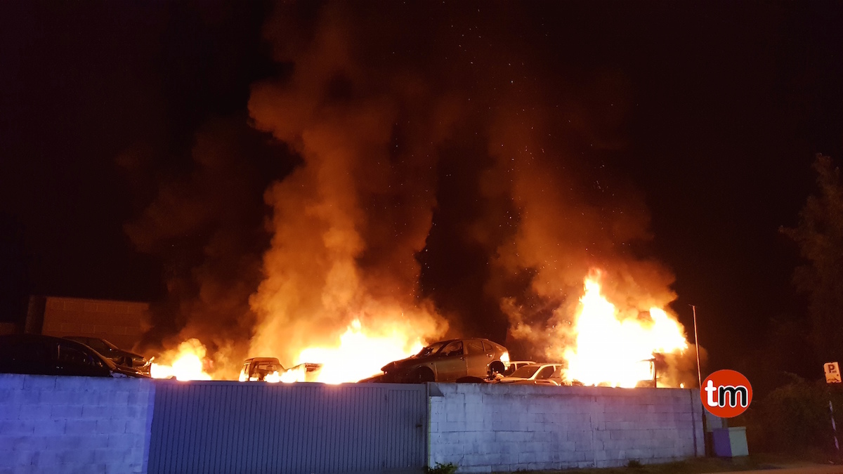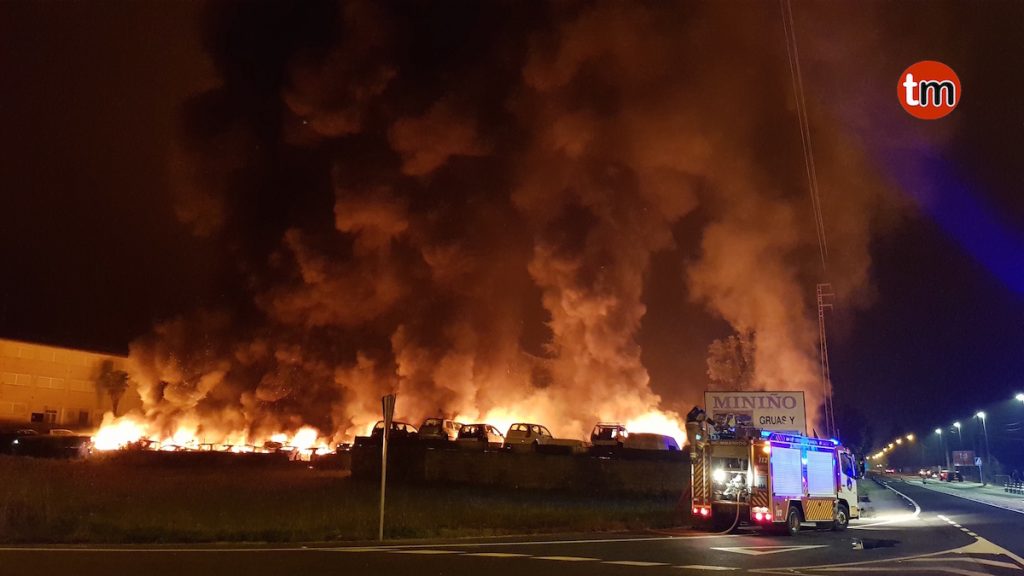 Poco antes de la una de la madrugada de este miércoles, los vecinos de la zona escucharon varias explosiones. Al salir a la calle comprobaron que estaba ardiendo el desguace próximo a sus casas que almacenaba más de 200 vehículos.