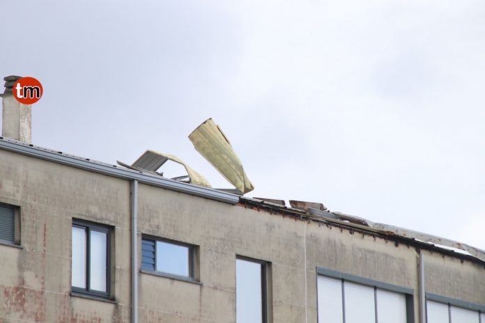 Los azotes de la tormenta Helena se han dejado notar en Baiona. El fuerte viento ha provocado la rotura del tejado del instituto Primero de Marzo sin que ocasionara daños personales.
