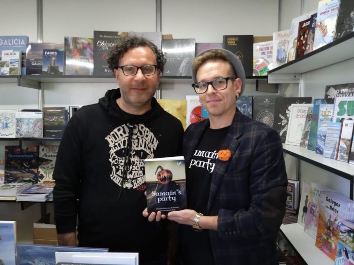 Los escritores baioneses Vicente Pedreira y Diego Cabrera hacen un tour por la Feria del Libro 2023 para presentar, promocionar y firmar ejemplares de su novela Samaín’s Party, un Thriller Policíaco sobre la leyenda de Samaín.