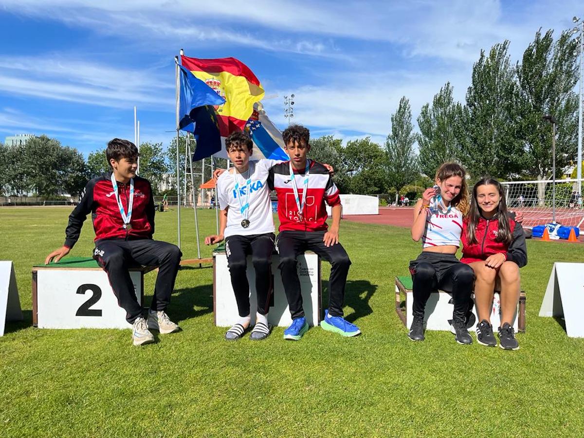 Fantástico fin de semana para los atletas del Atletismo Trega de Tomiño que consiguieron cuatro medallas autonómicas en el Campeonato de Galicia Sub16 de pista al aire libre.