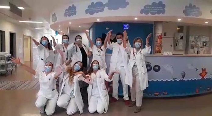 Así, al ritmo de la canción “Un Mar de Besos” del grupo Bombay, los niños, sus familias, el personal sanitario y el equipo docente del aula Hospitalaria, participaron en este homenaje lanzando besos en honor a todos aquellos que están o estuvieron alguna vez hospitalizados.